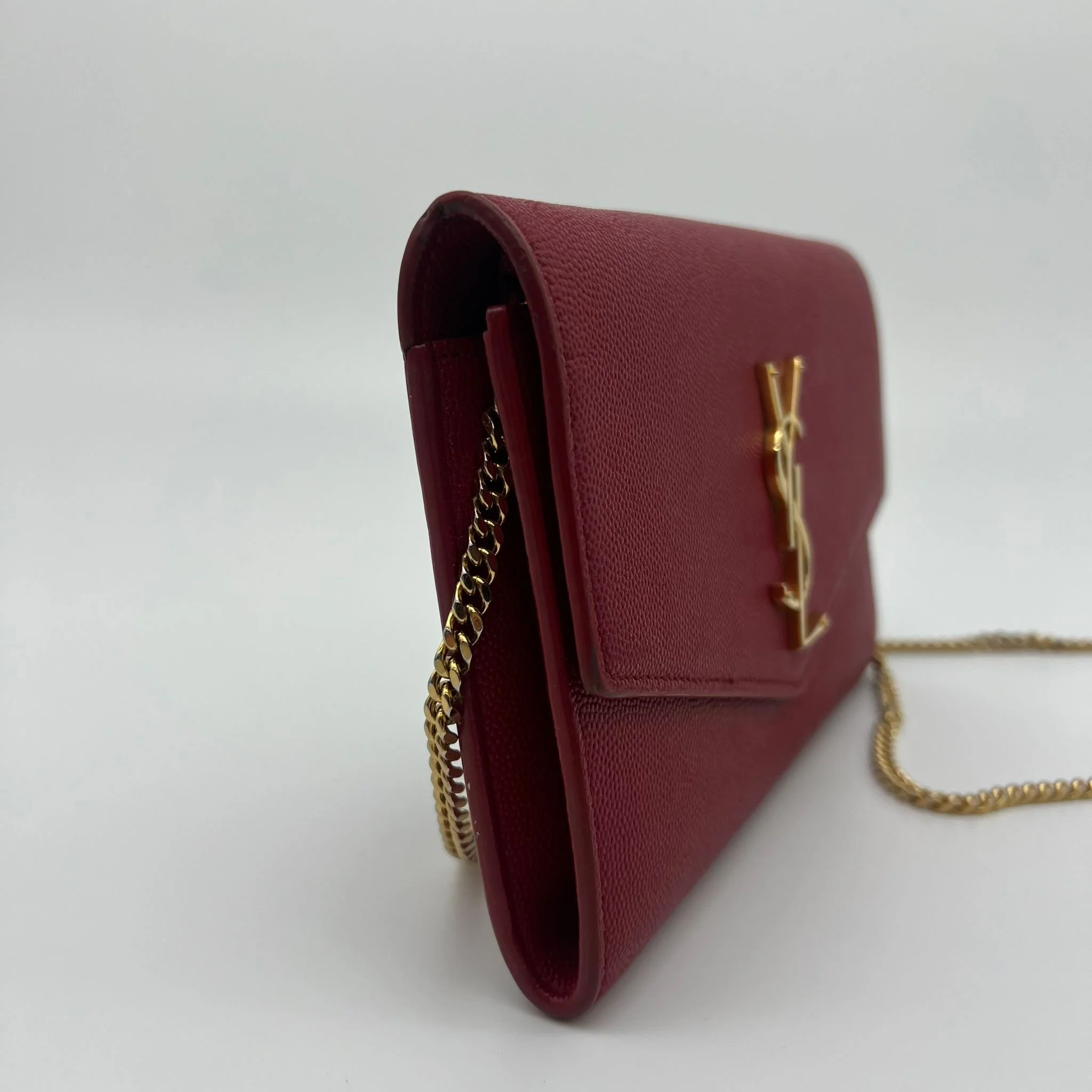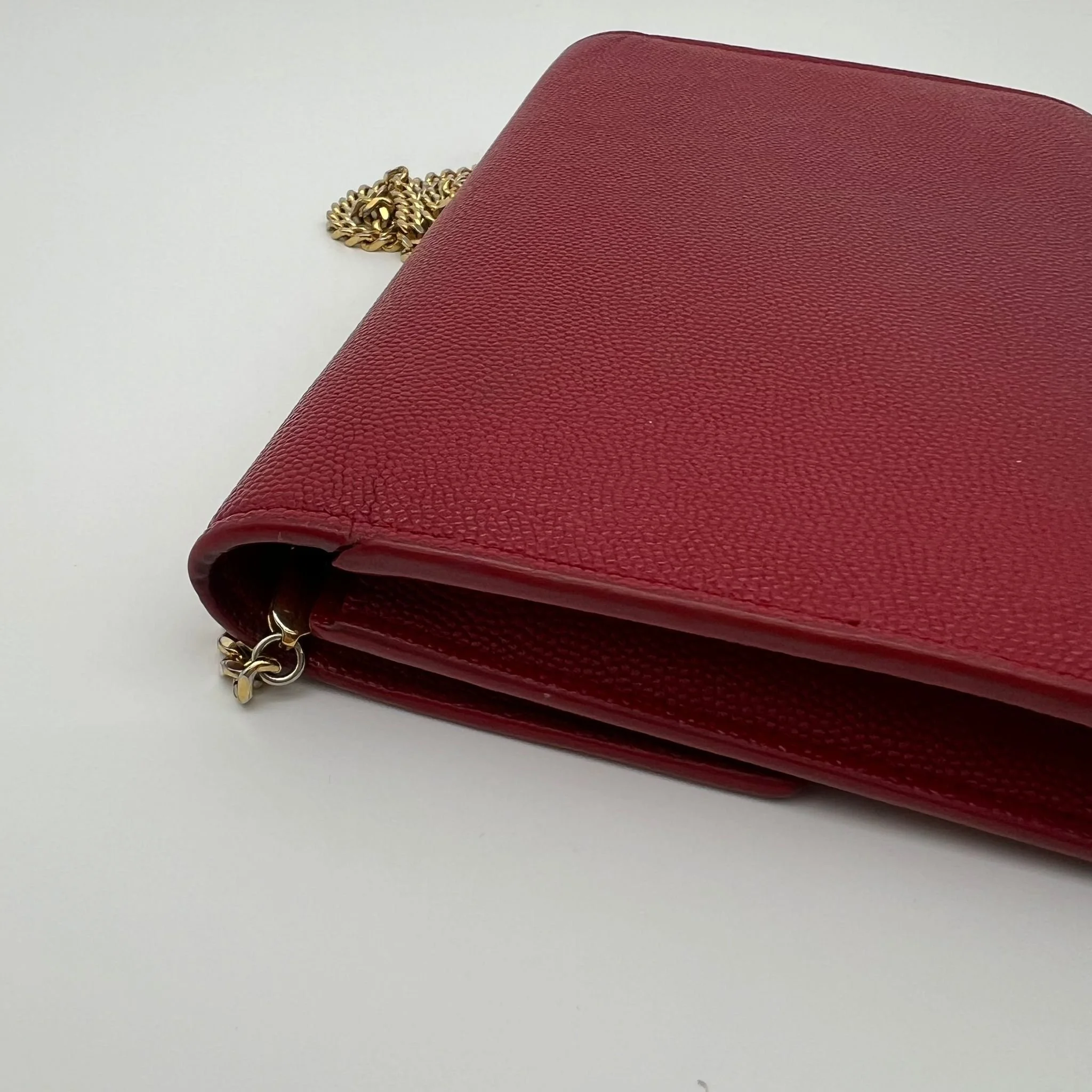 Item Description/Model: Saint Laurent YSL Uptown Wallet on Chain Bag in Red Embossed Leather Gold Hardware