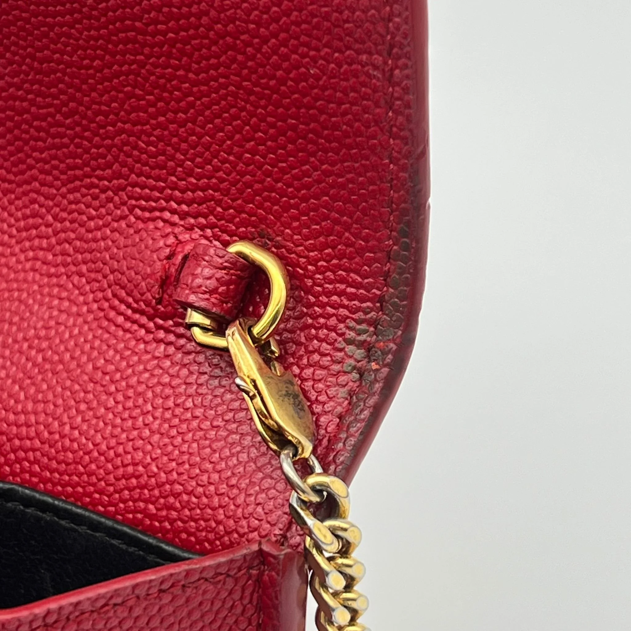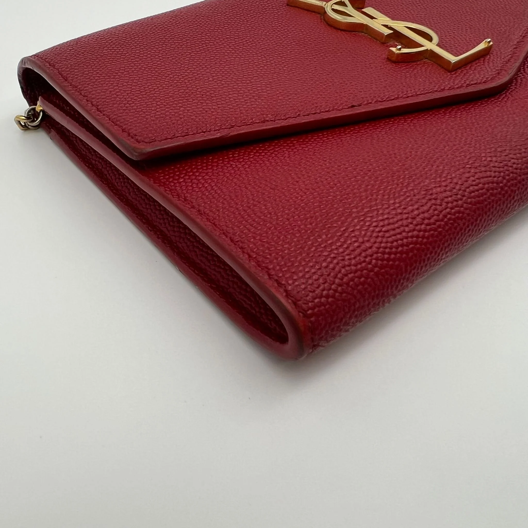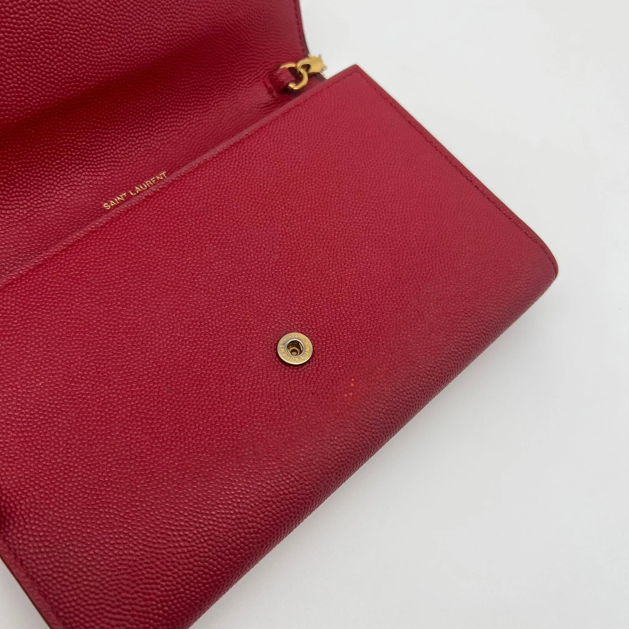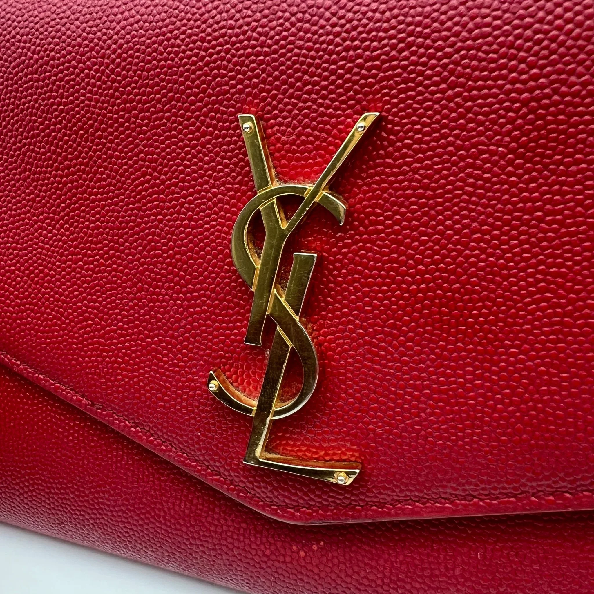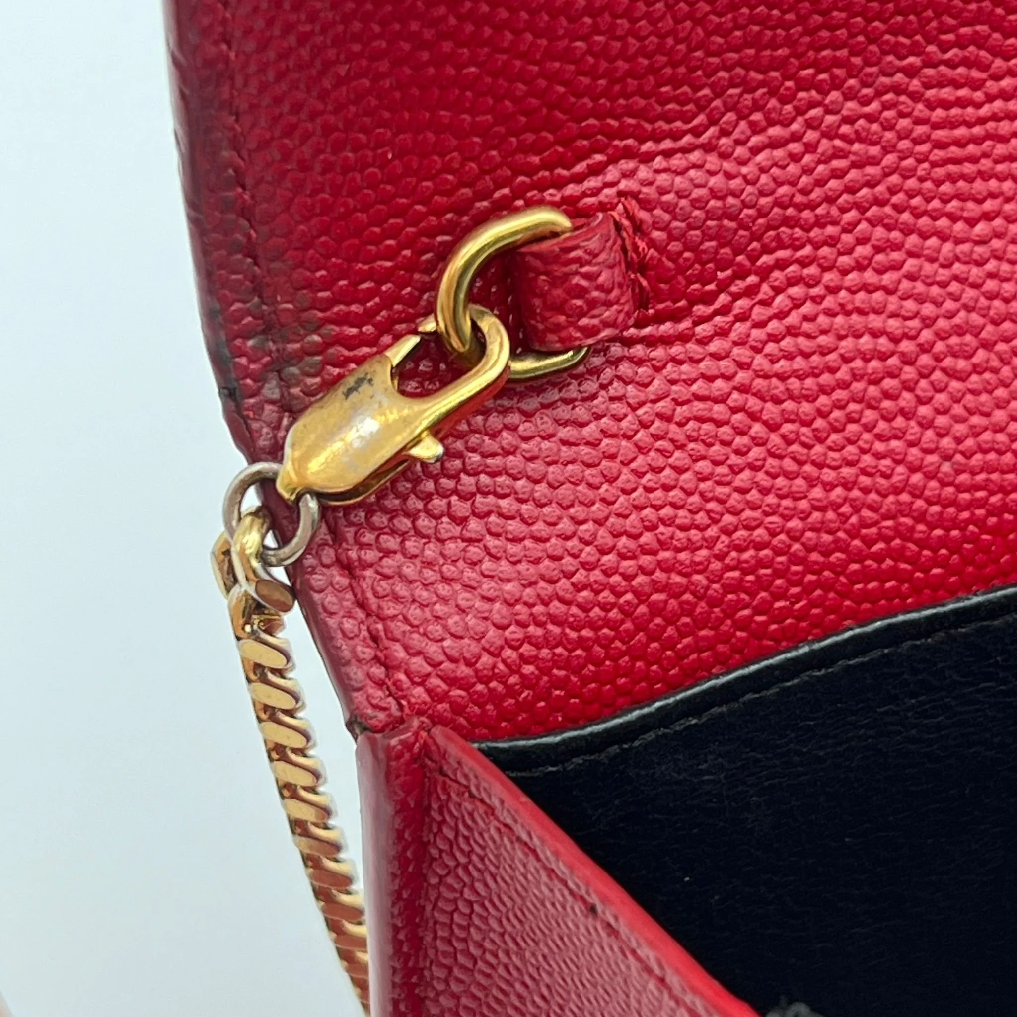 Saint Laurent YSL Uptown Wallet on Chain Bag Red Embossed Leather Gold Hardware