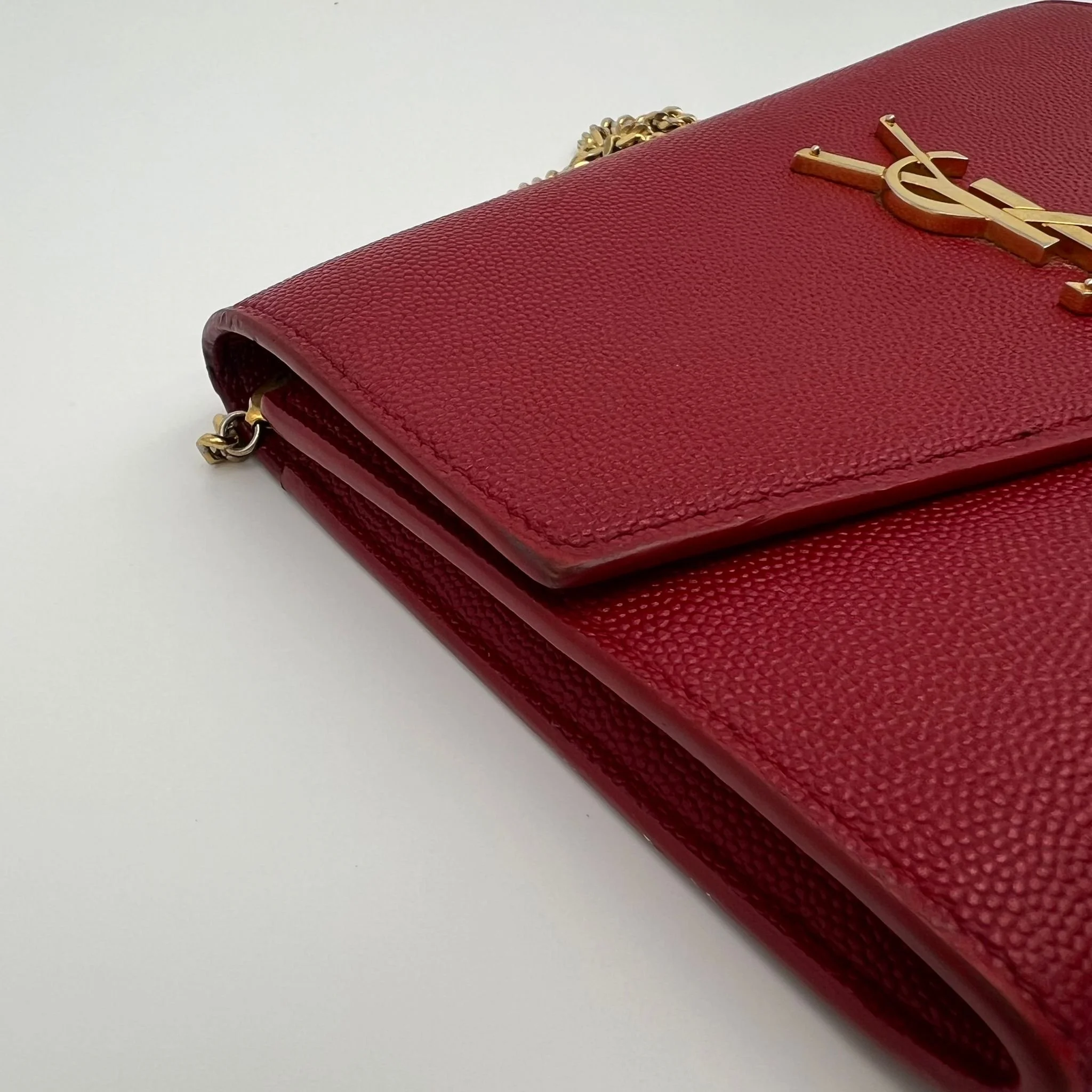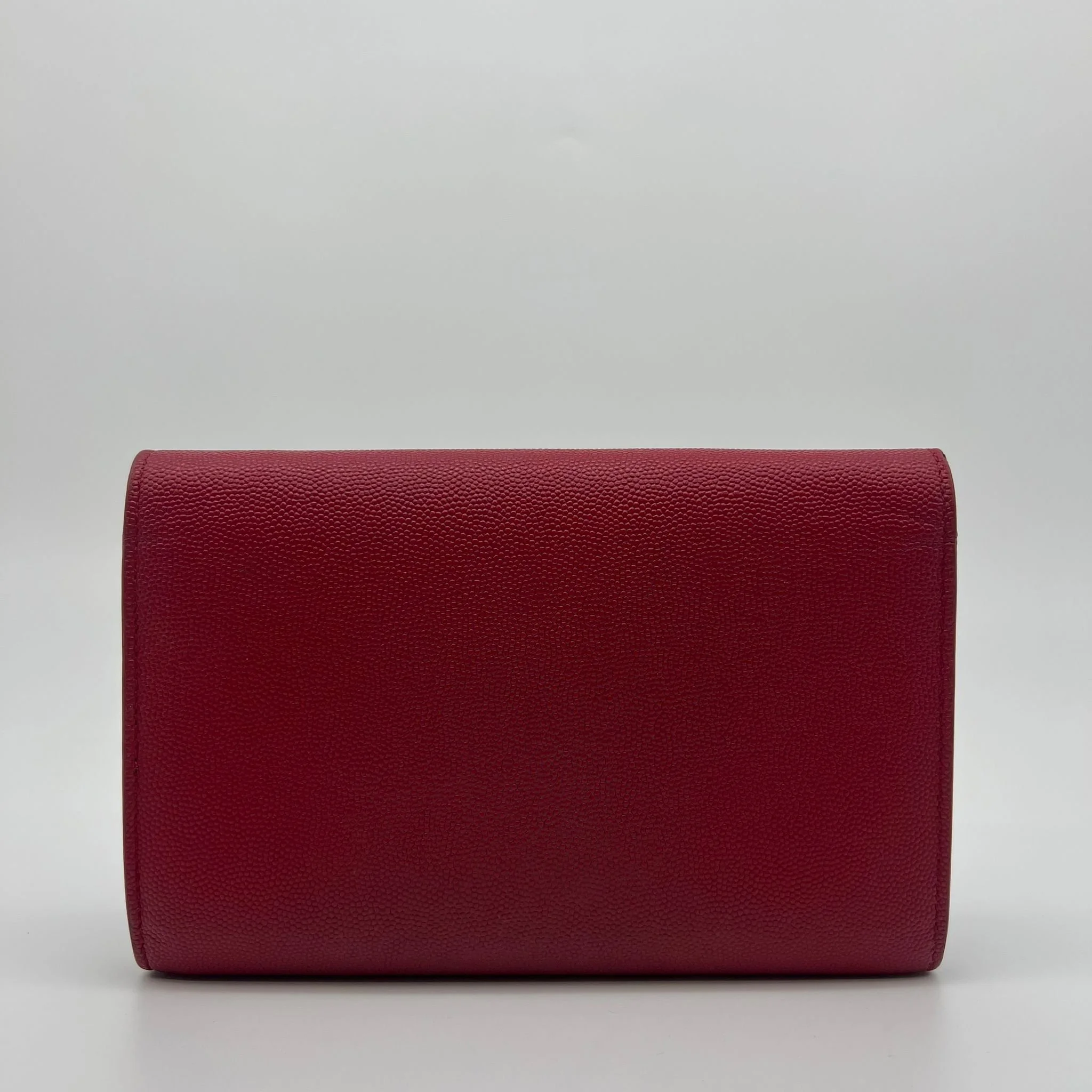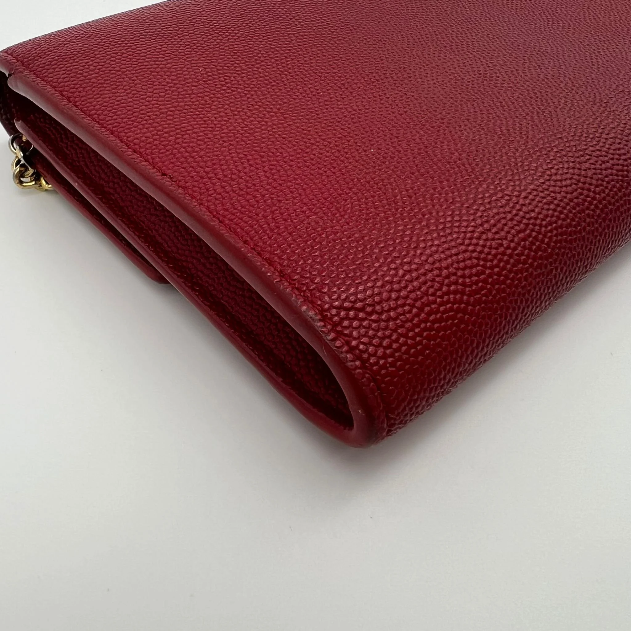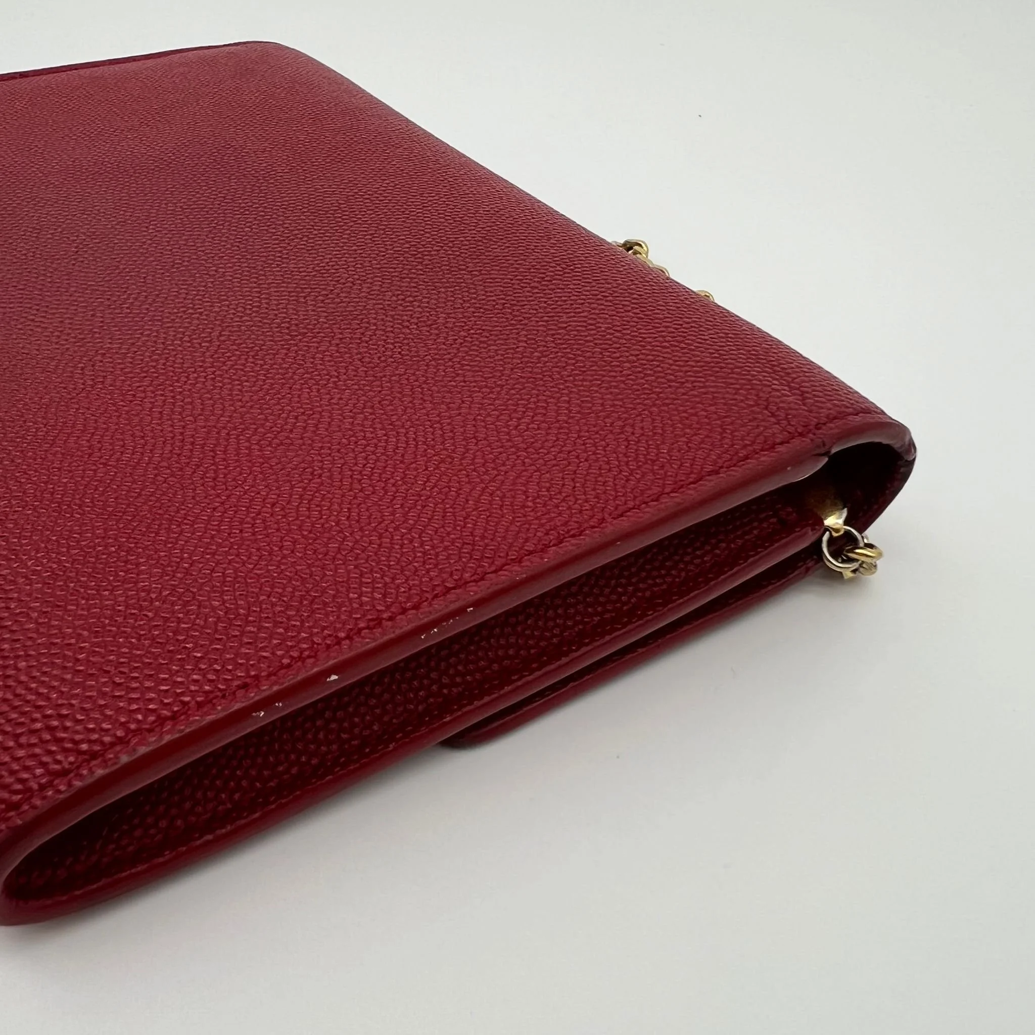 Saint Laurent YSL Uptown Wallet on Chain Bag Red Embossed Leather Gold Hardware