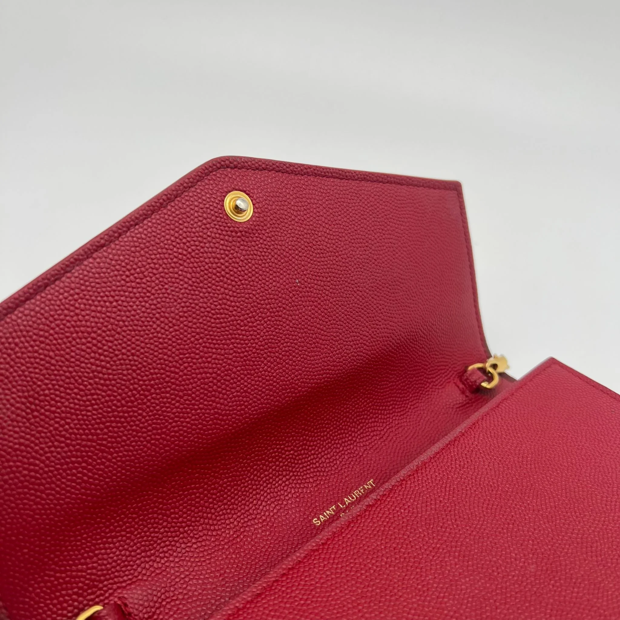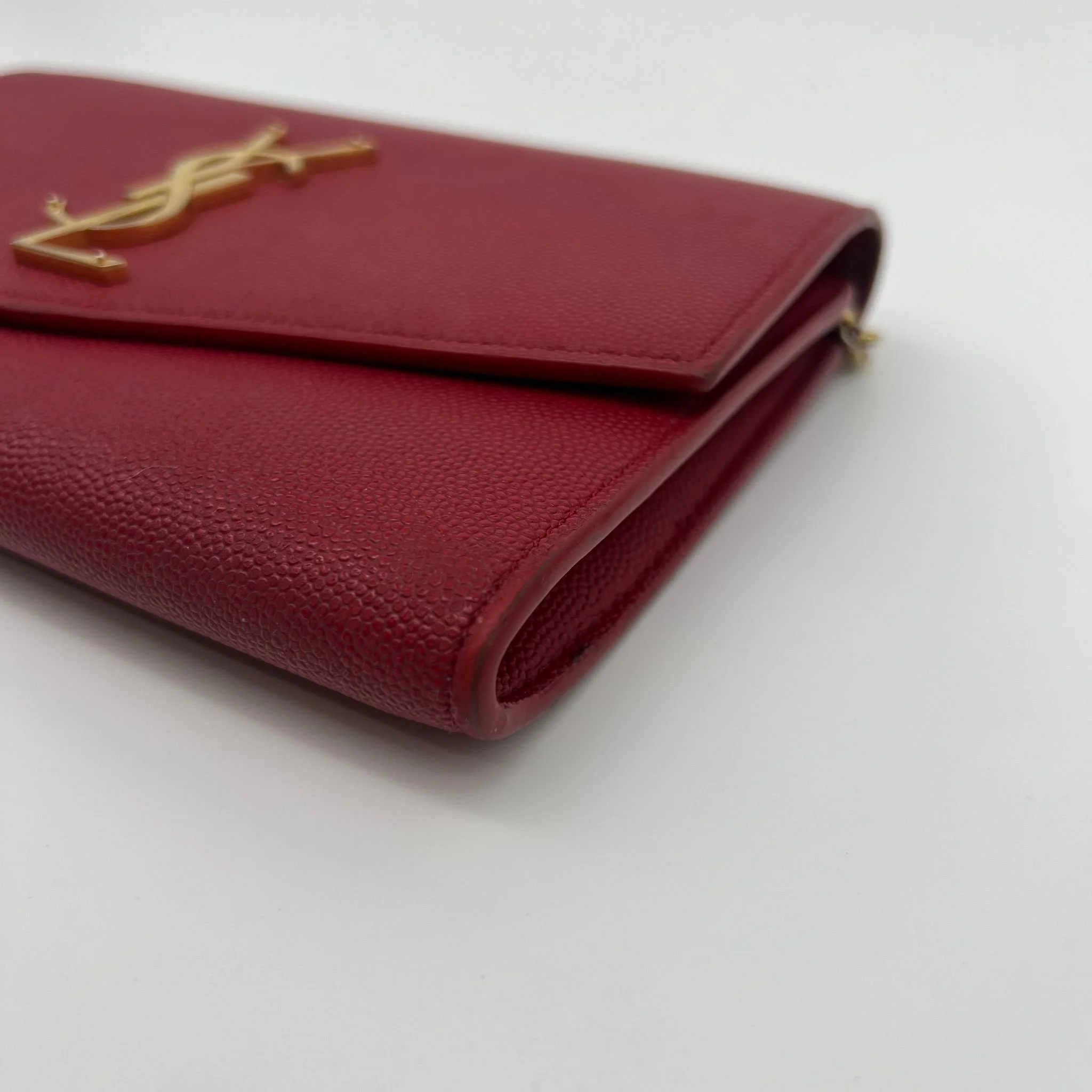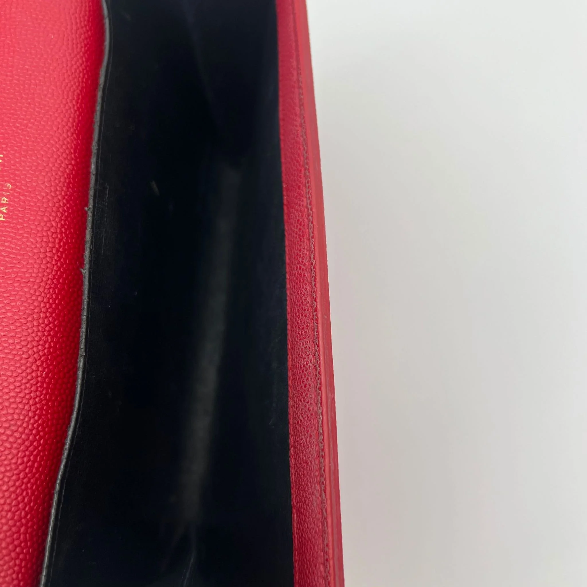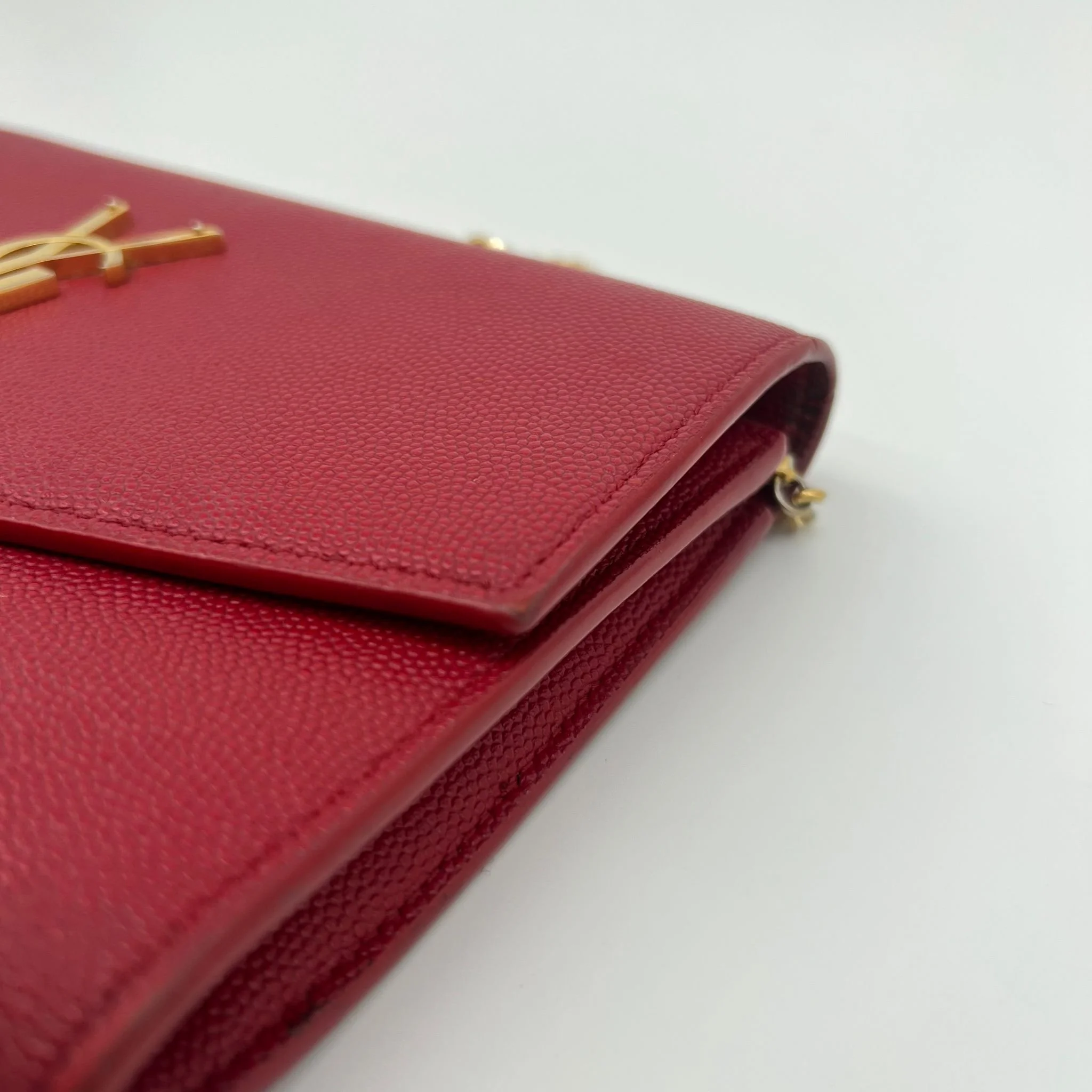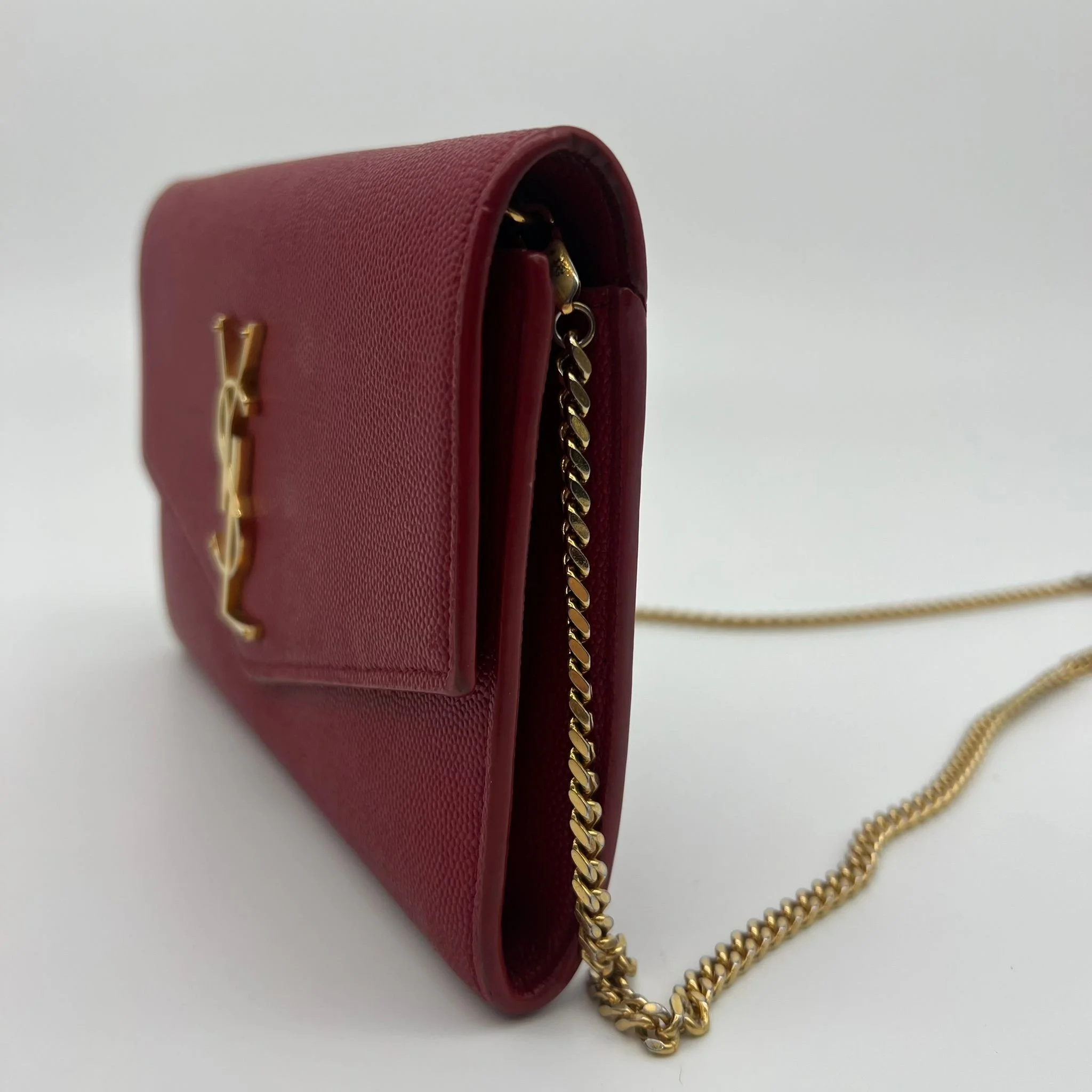 Saint Laurent YSL Uptown Wallet on Chain Bag Red Embossed Leather Gold Hardware