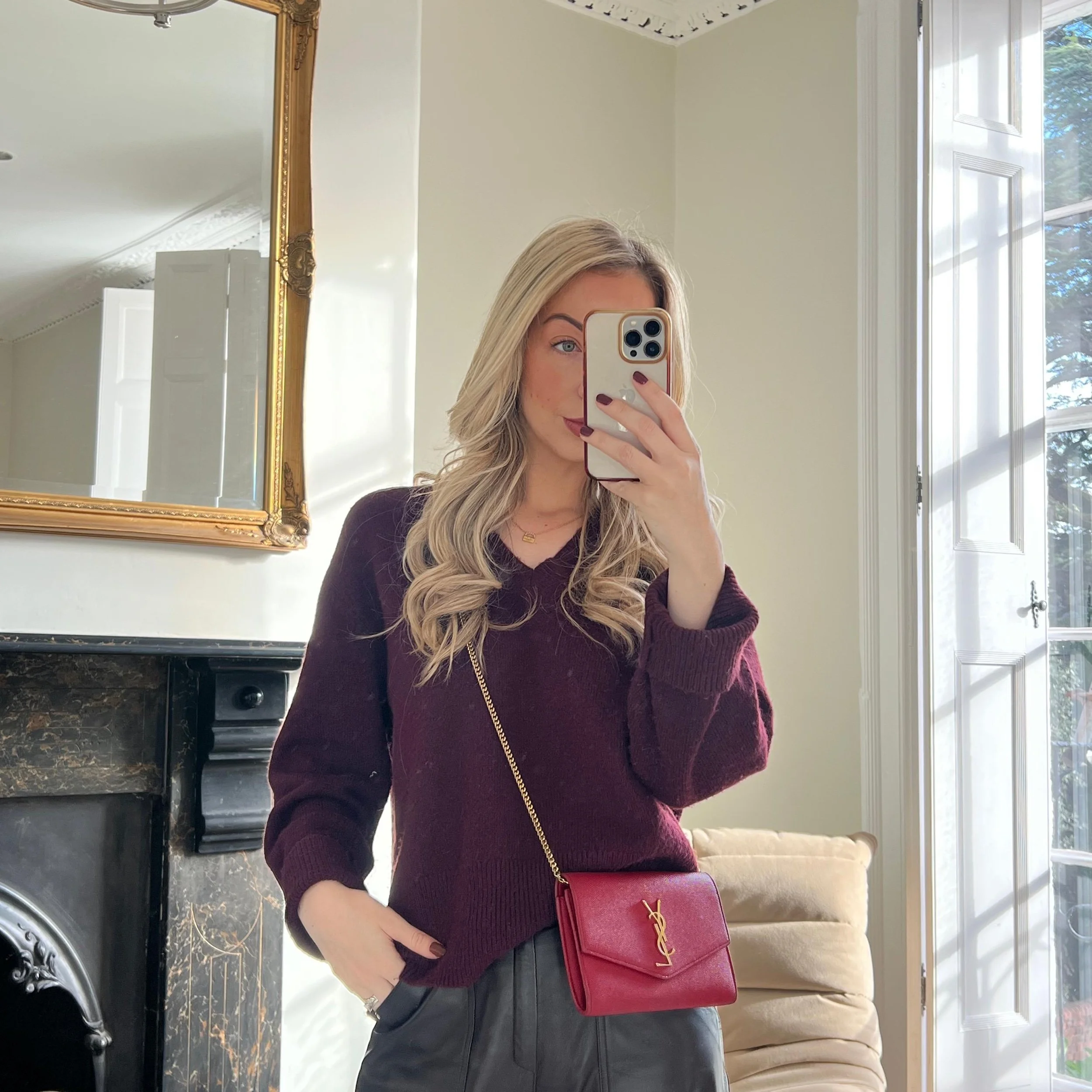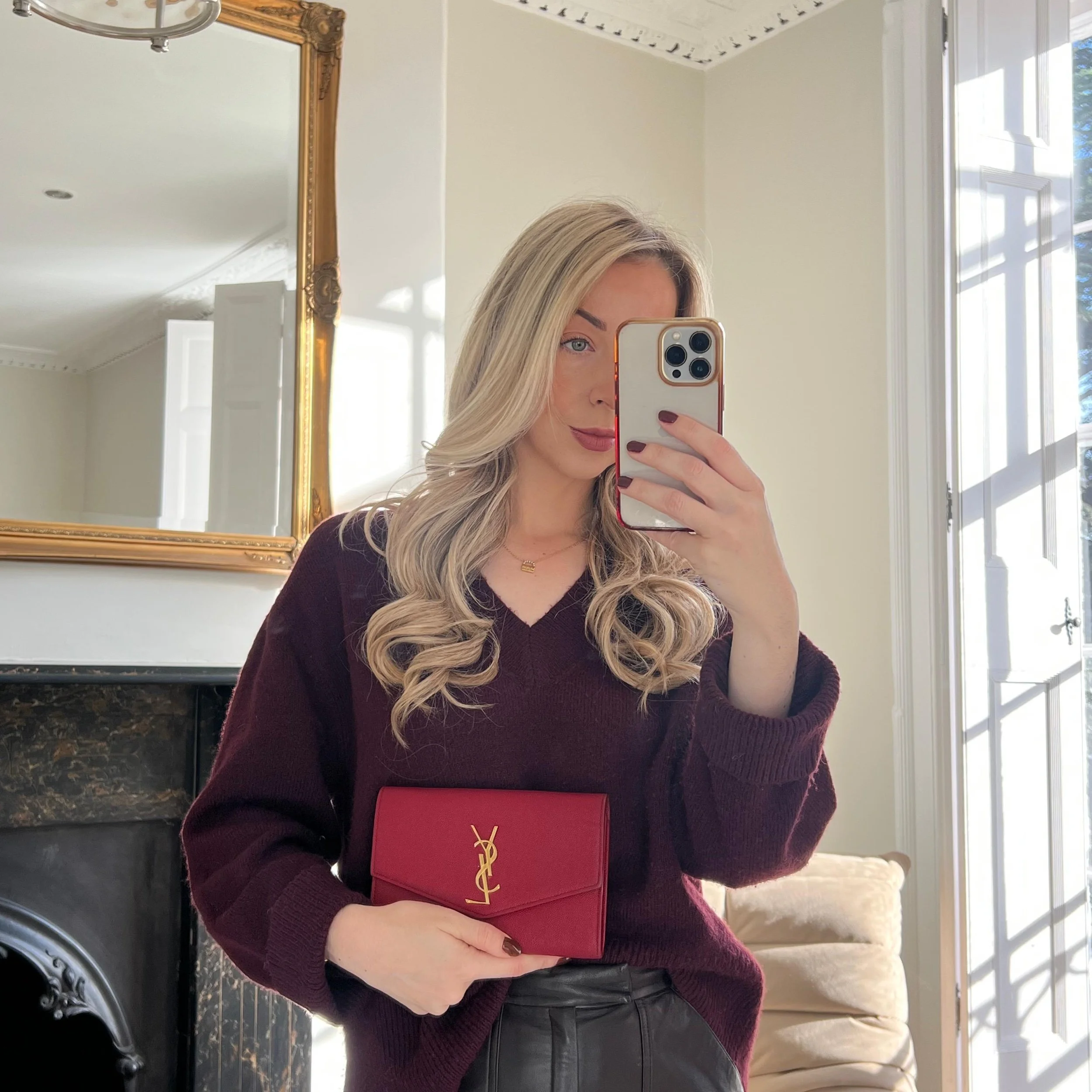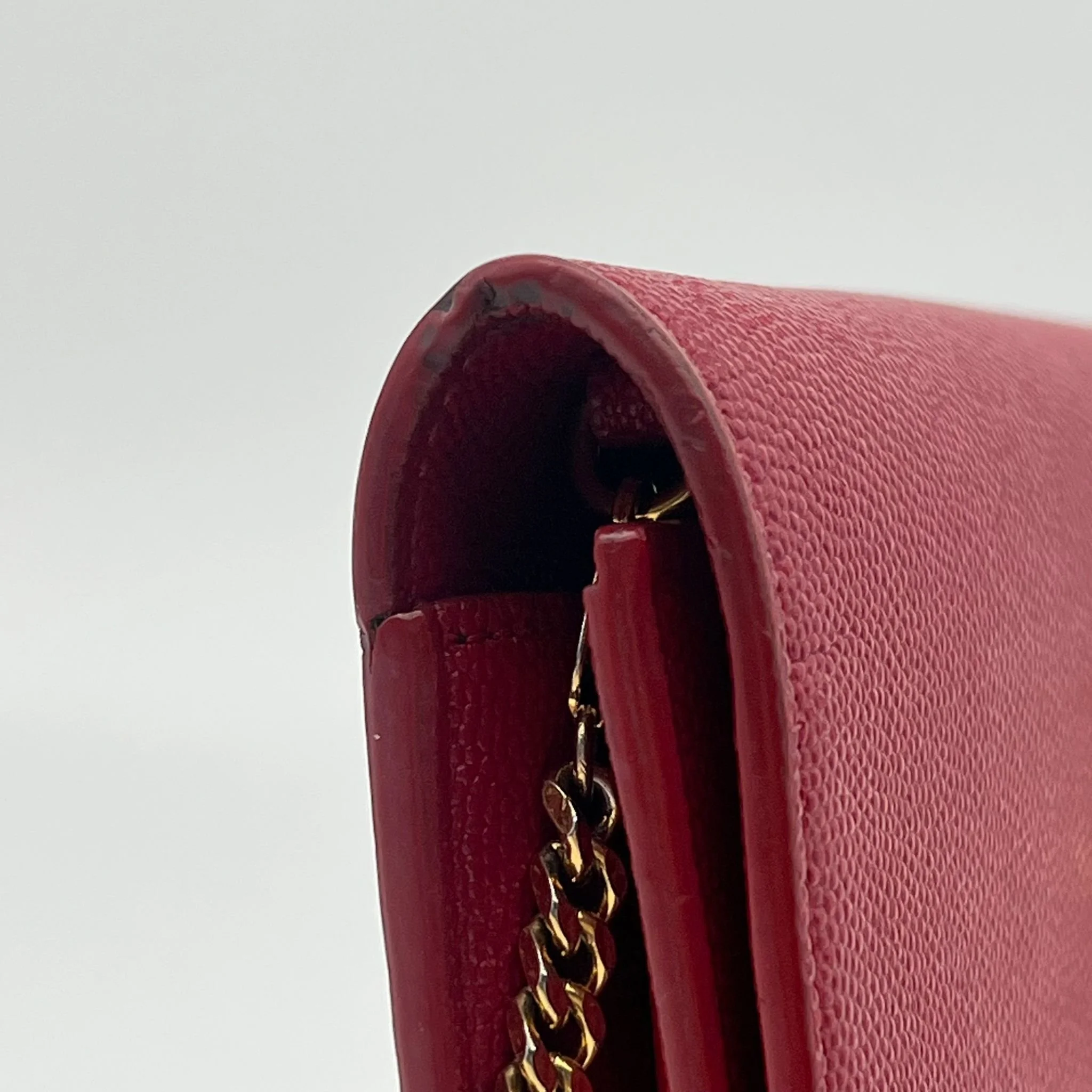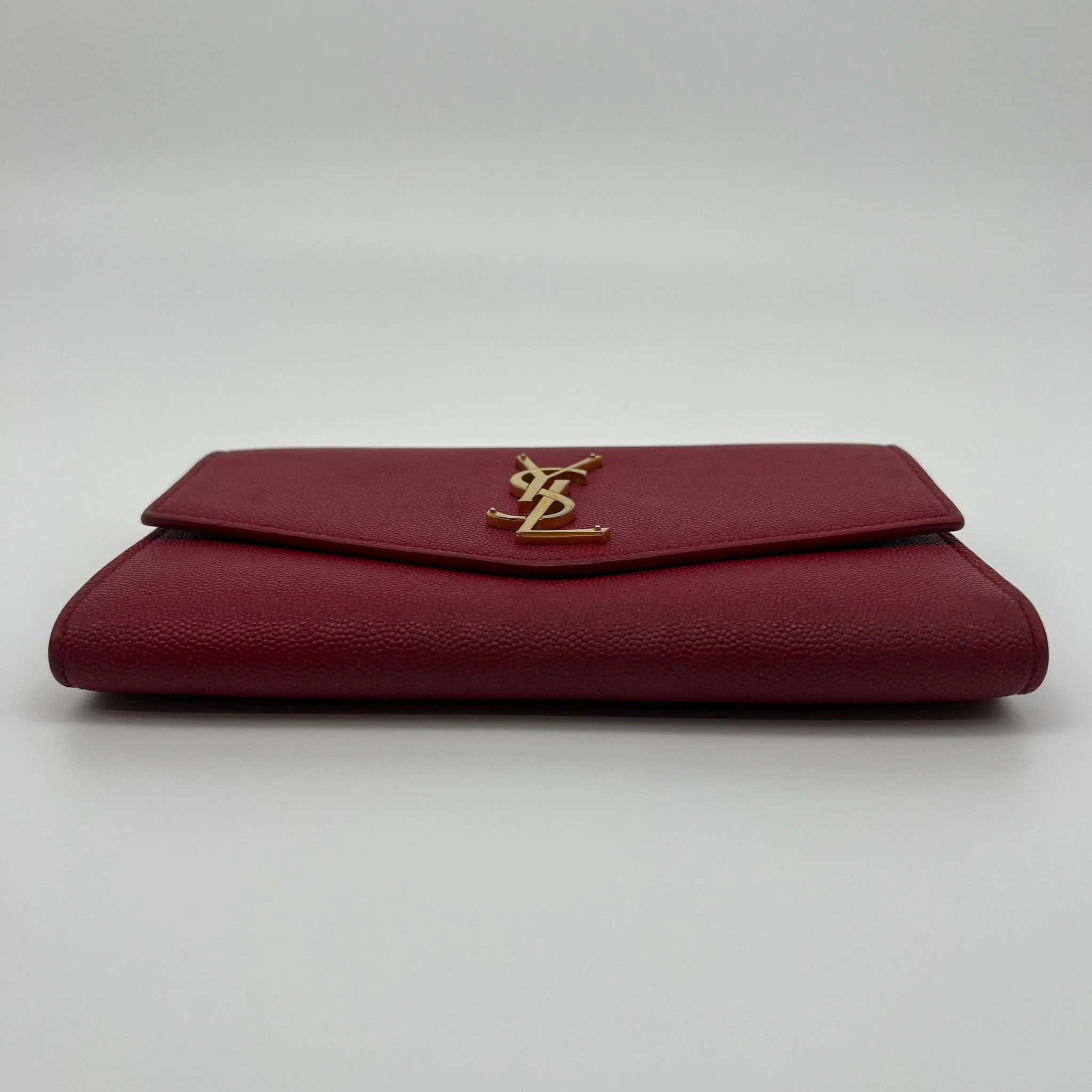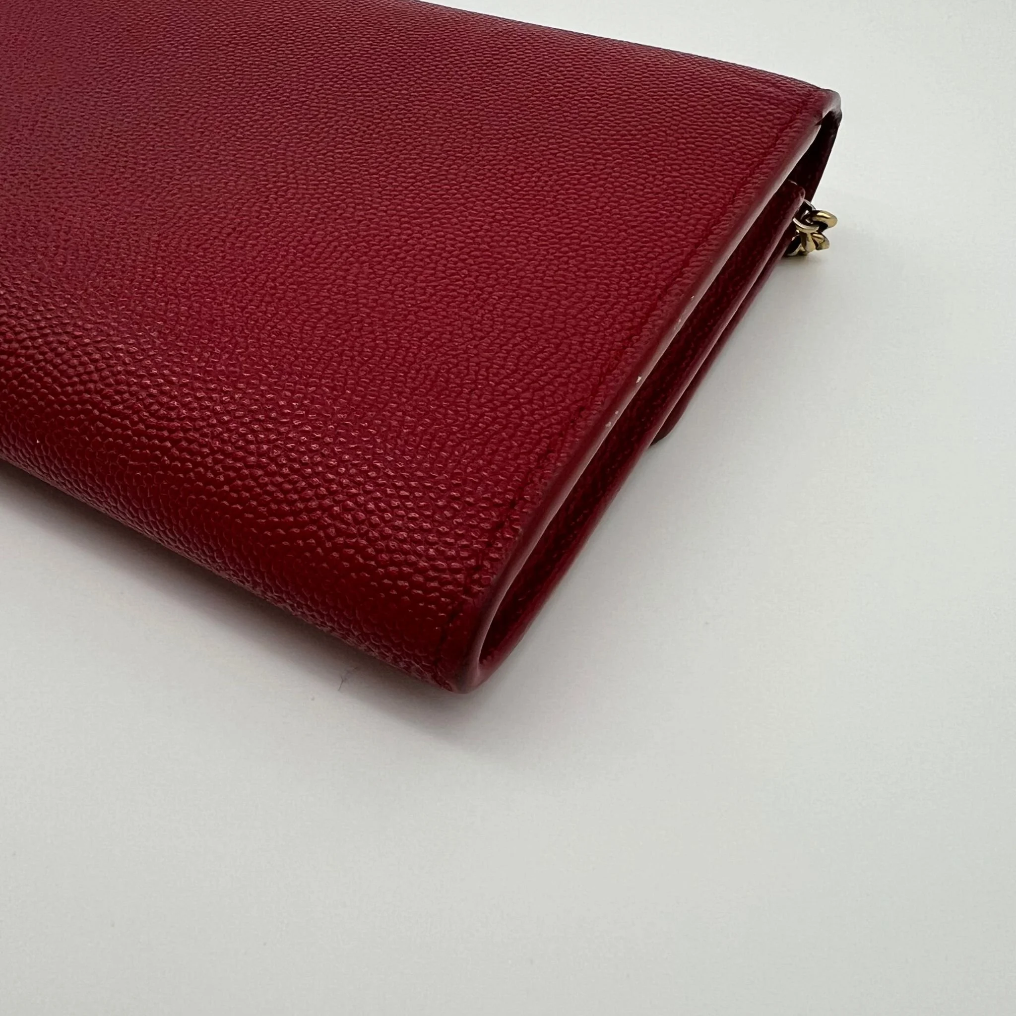 Saint Laurent YSL Uptown Wallet on Chain Bag Red Embossed Leather Gold Hardware