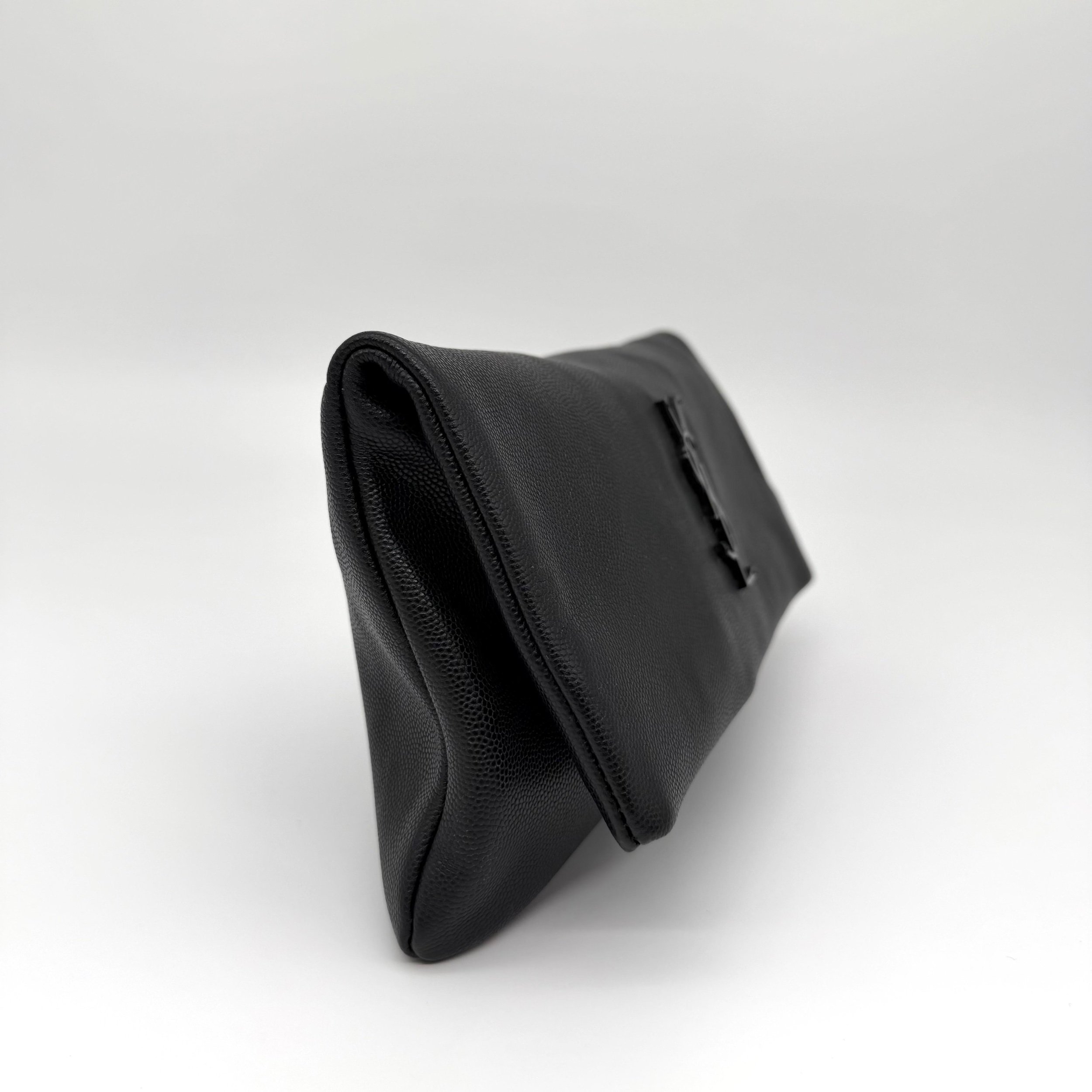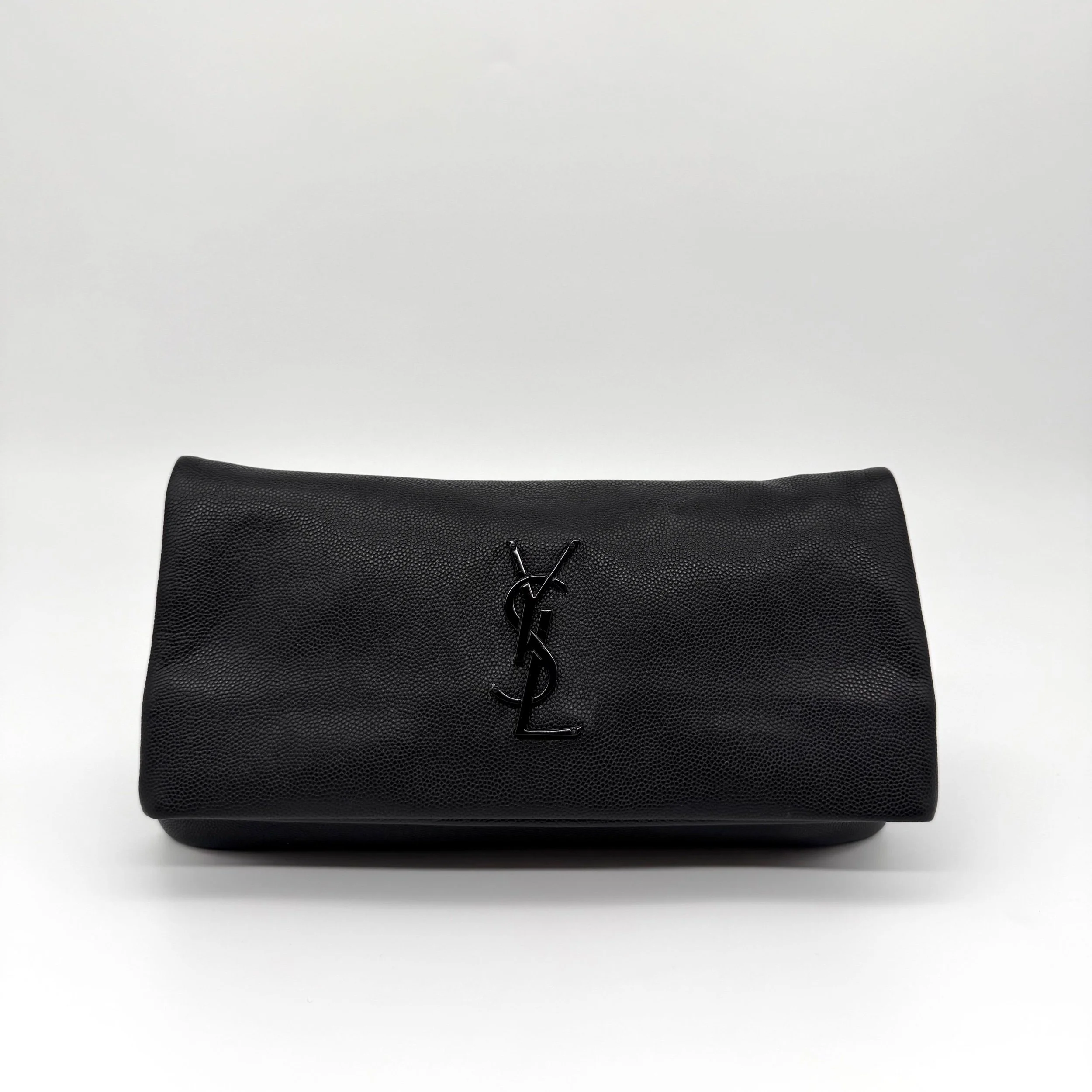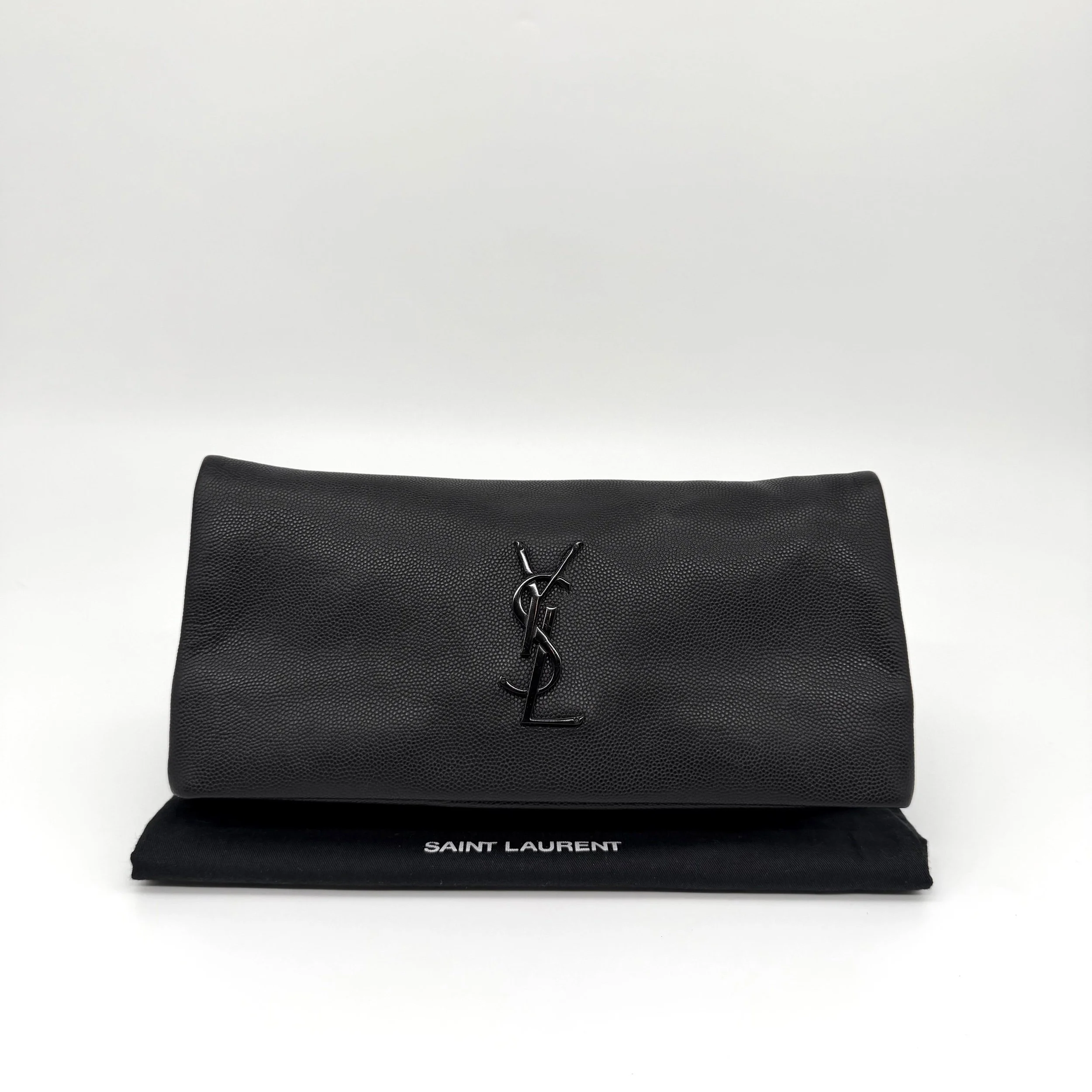 Item Description/Model: Saint Laurent YSL West Hollywood Monogram Fold Over Clutch Pouch Bag in Black Grained Leather Black Hardware