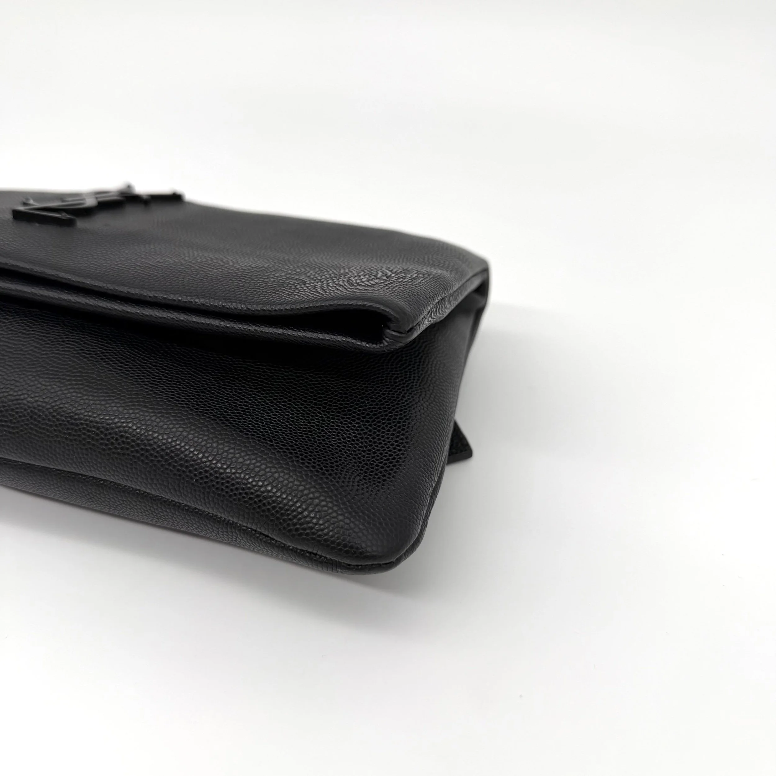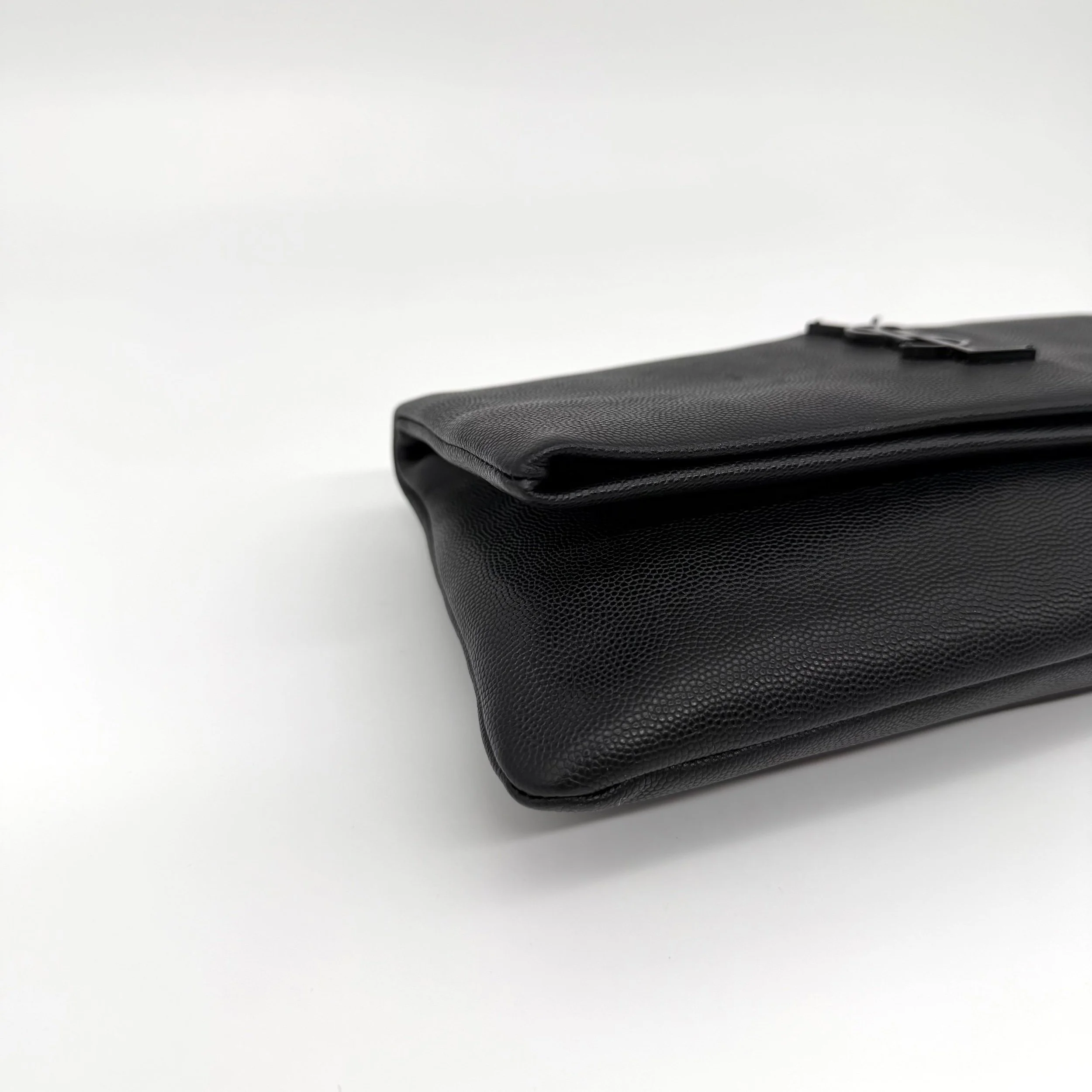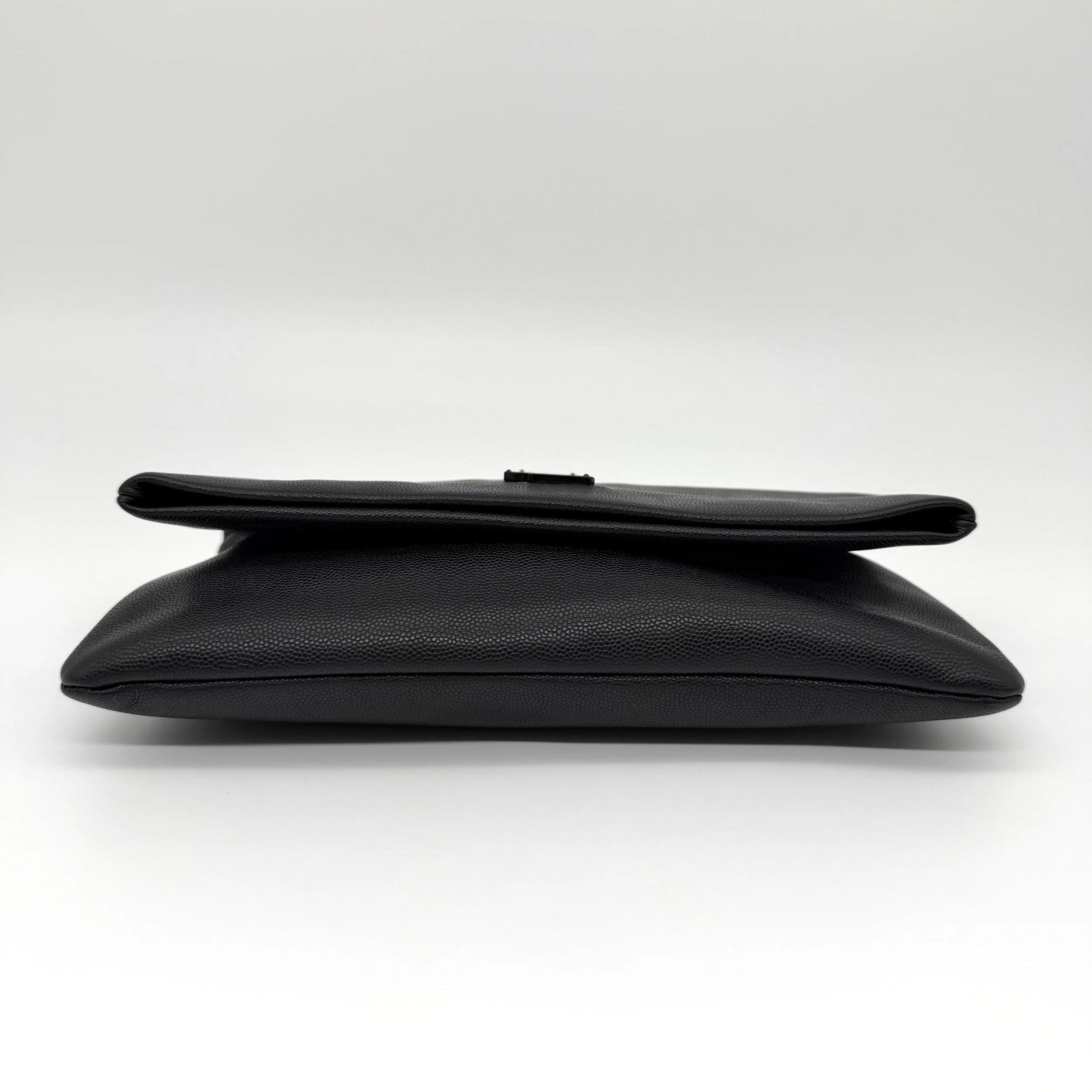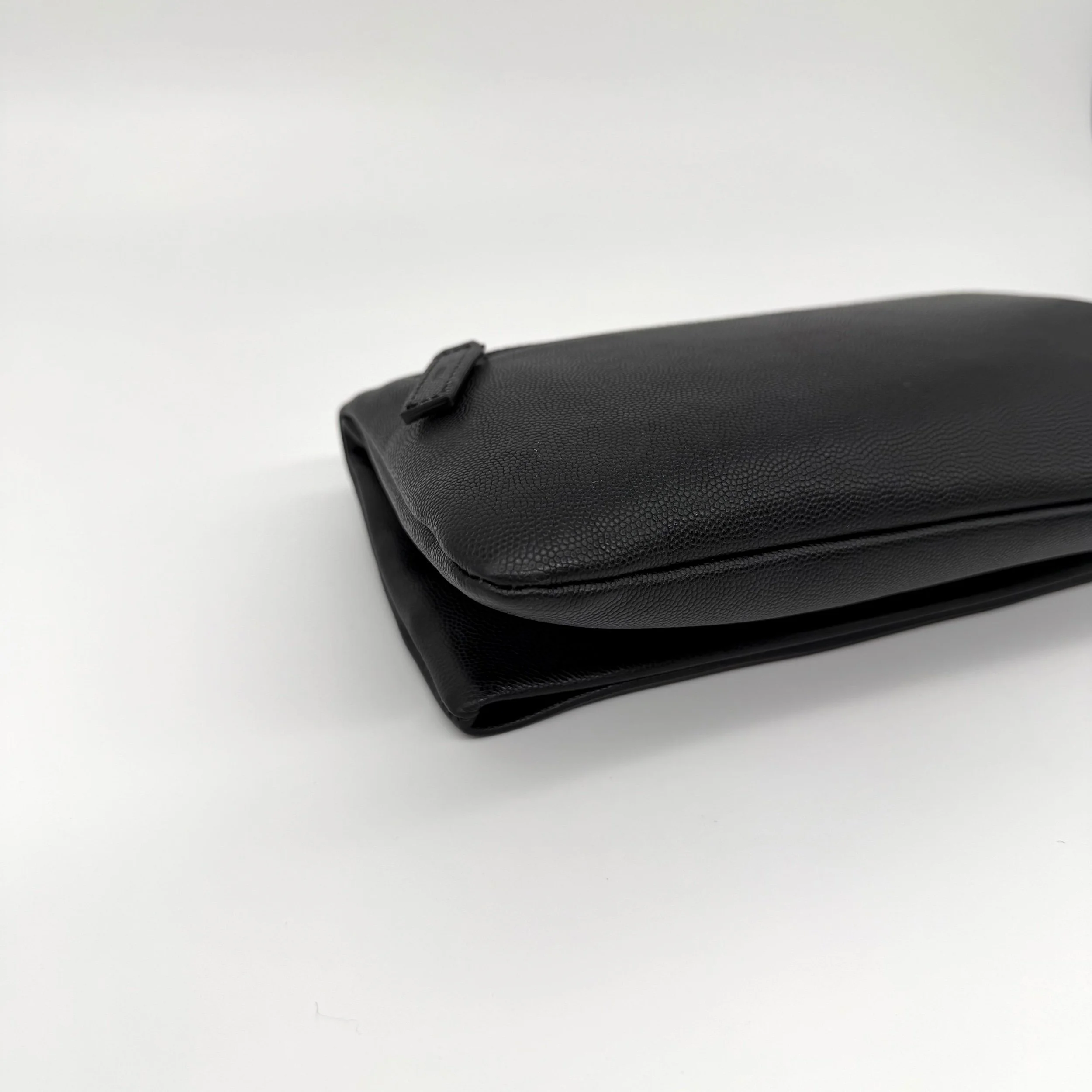 Item Description/Model: Saint Laurent YSL West Hollywood Monogram Fold Over Clutch Pouch Bag in Black Grained Leather Black Hardware