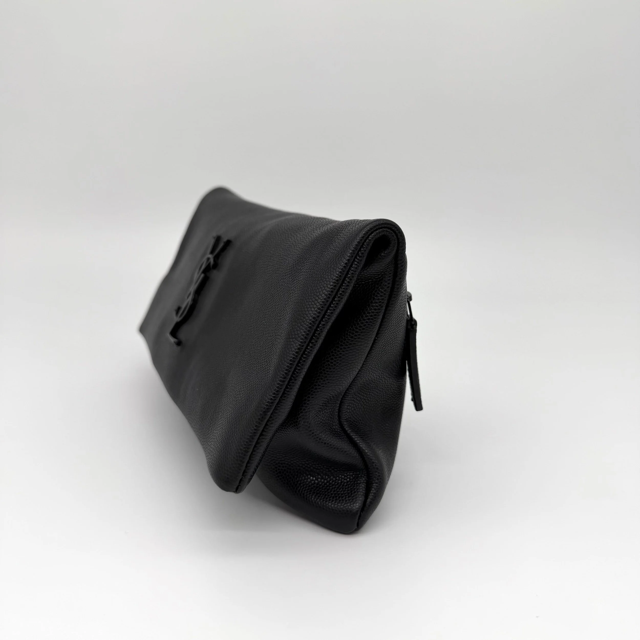 Saint Laurent YSL West Hollywood Monogram Fold Over Clutch Pouch Bag Black