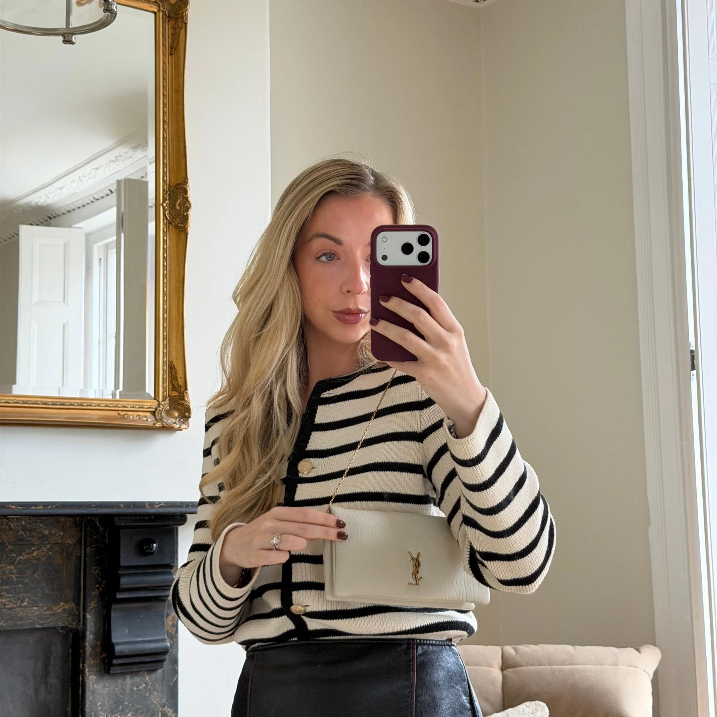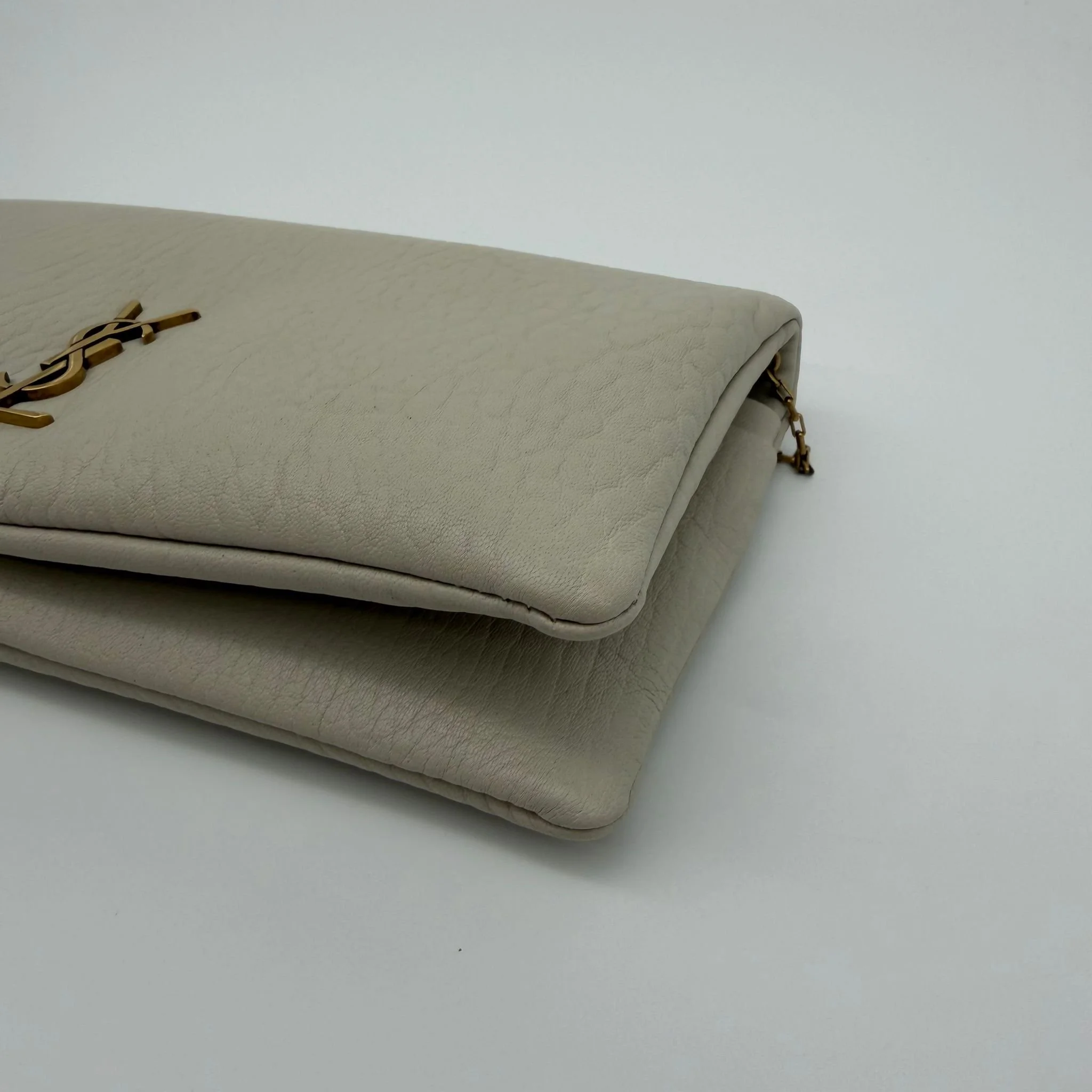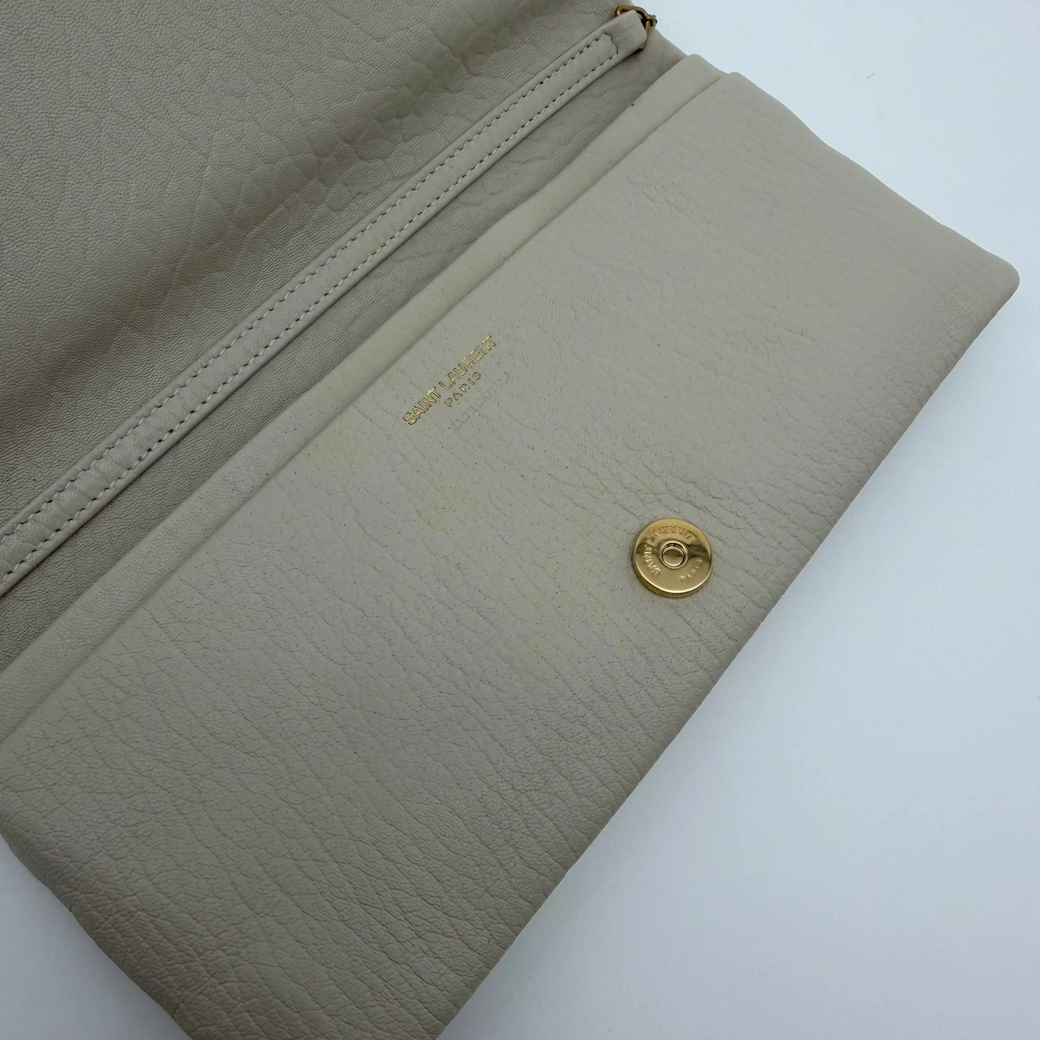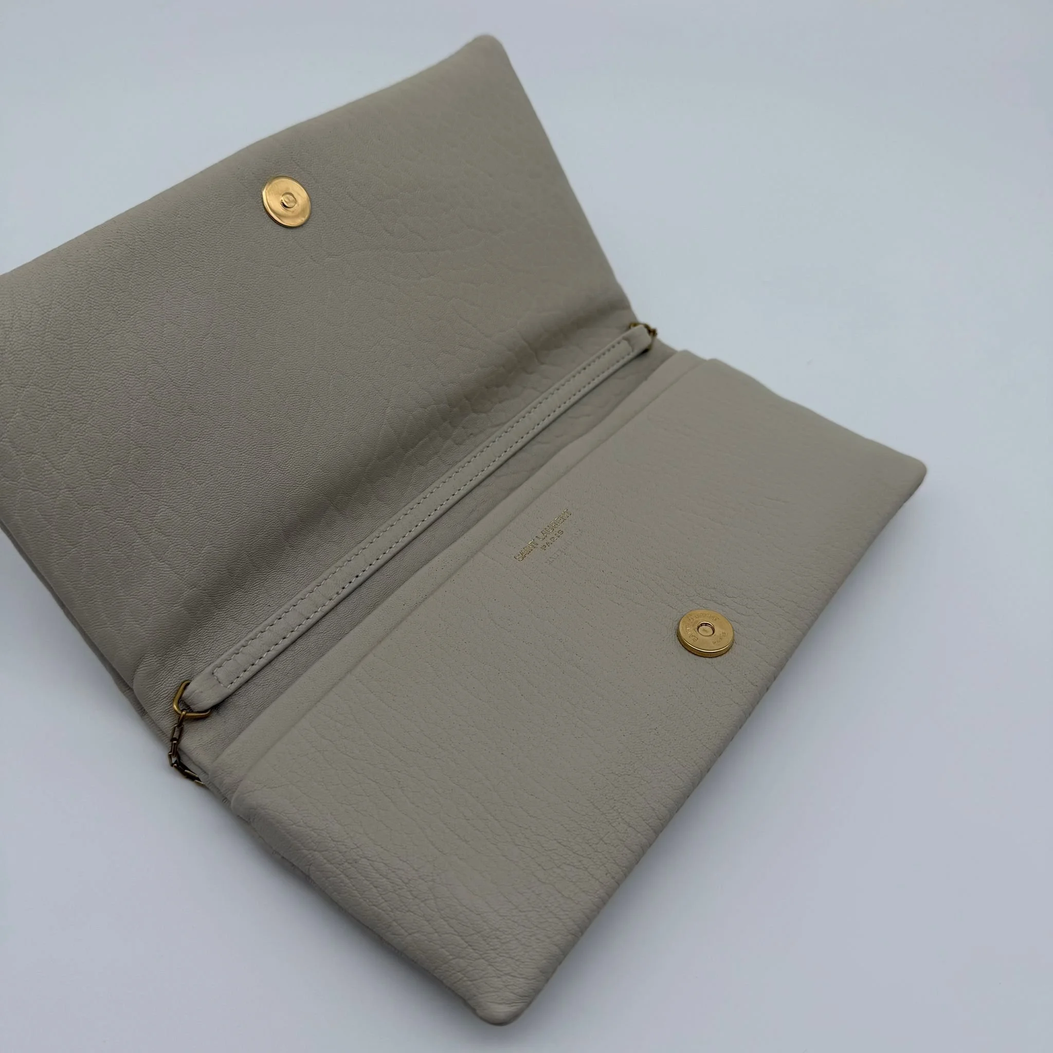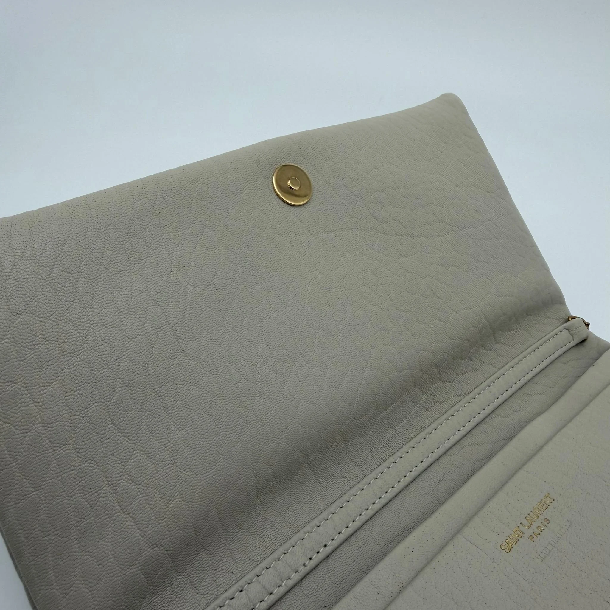 Item Description/Model: Saint Laurent YSL Calypso Mini Wallet on Chain Bag in Blanc Vintage (Off white) Grained Lambskin Leather with Gold Hardware