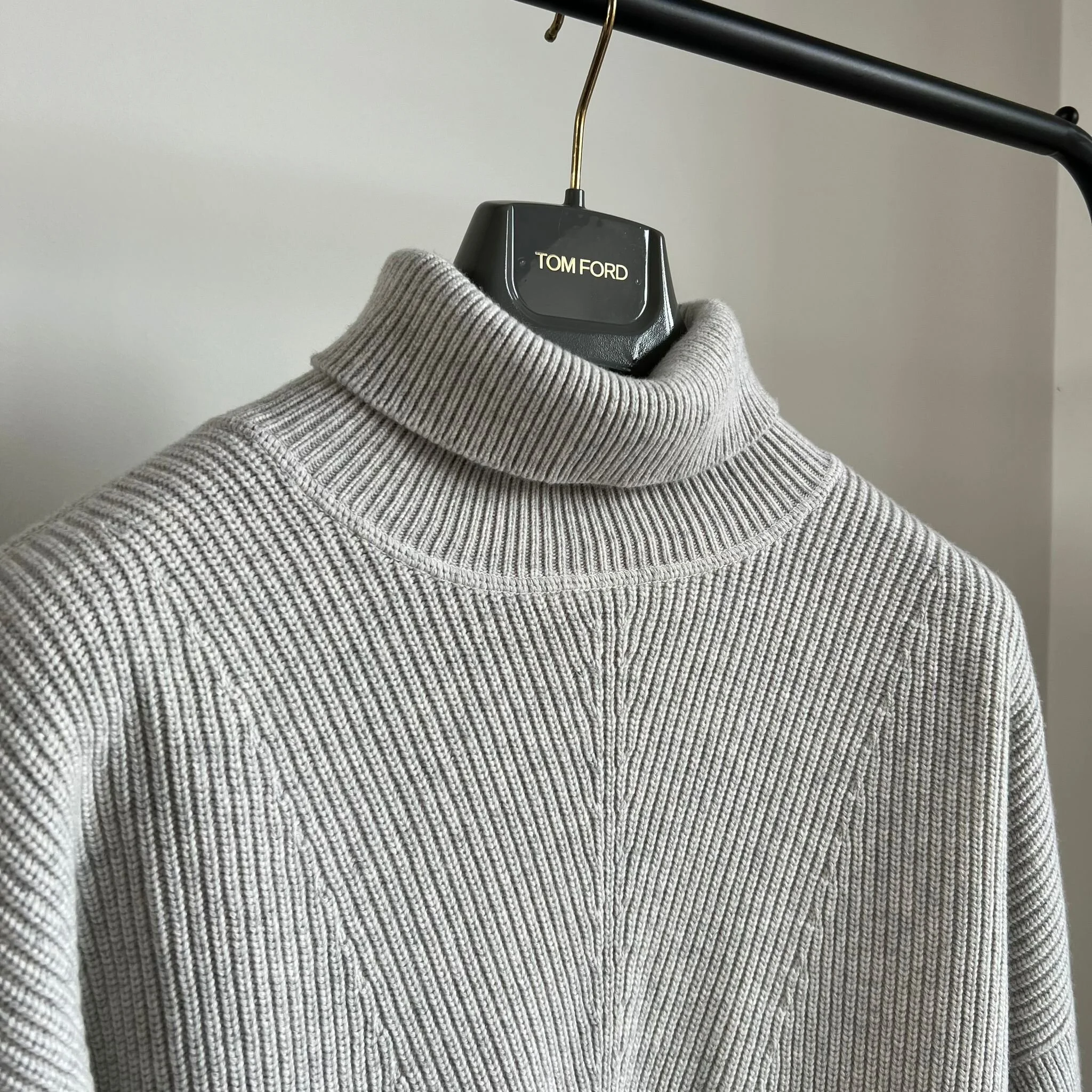 Item Description/Model: Tom Ford Men's Roll Neck Pull Over Jumper in a thick lana wool knit Light Grey