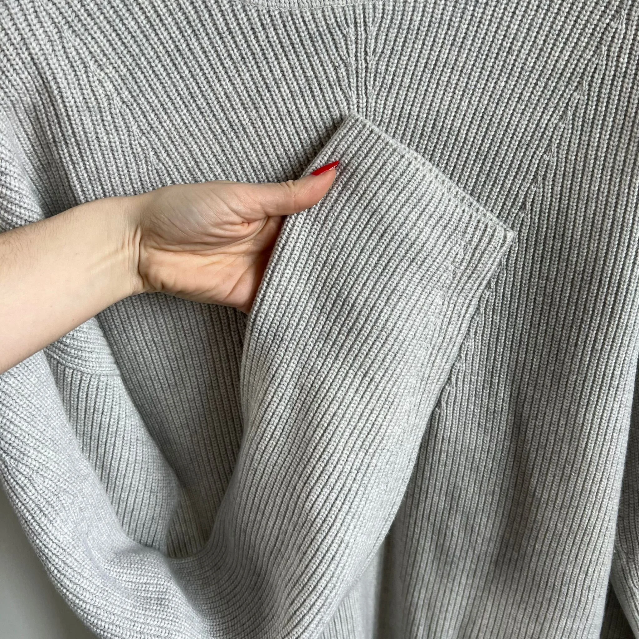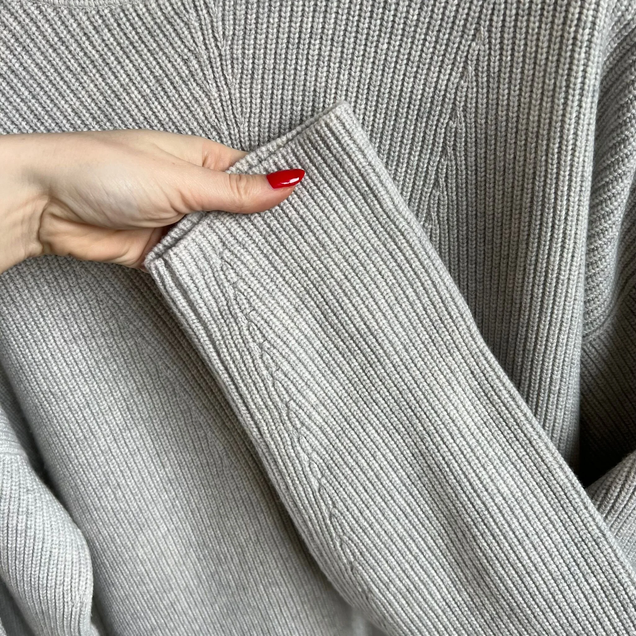 Very heavy weight knit and oversized. Sleeves very long so they can be rolled to desire length.